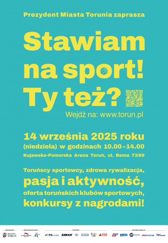 W niedzielę, 14 września 2025 r., w Narodowy Dzień Sportu zapraszamy wszystkich mieszkańców do Kujawsko-Pomorskiej Areny Toruń na drugą edycję wyjątkowego wydarzenia „Stawiam na Sport! Ty też?”. To niepowtarzalna okazja, aby w jednym miejscu poznać bogatą ofertę szkoleniową toruńskich klubów sportowych na rok szkolny/sezon 2025/2026. Swoje propozycje zaprezentuje ponad 40 klubów sportowych. Ponad 20 dyscyplin sportowych – od gier zespołowych: piłki nożnej, siatkówki,