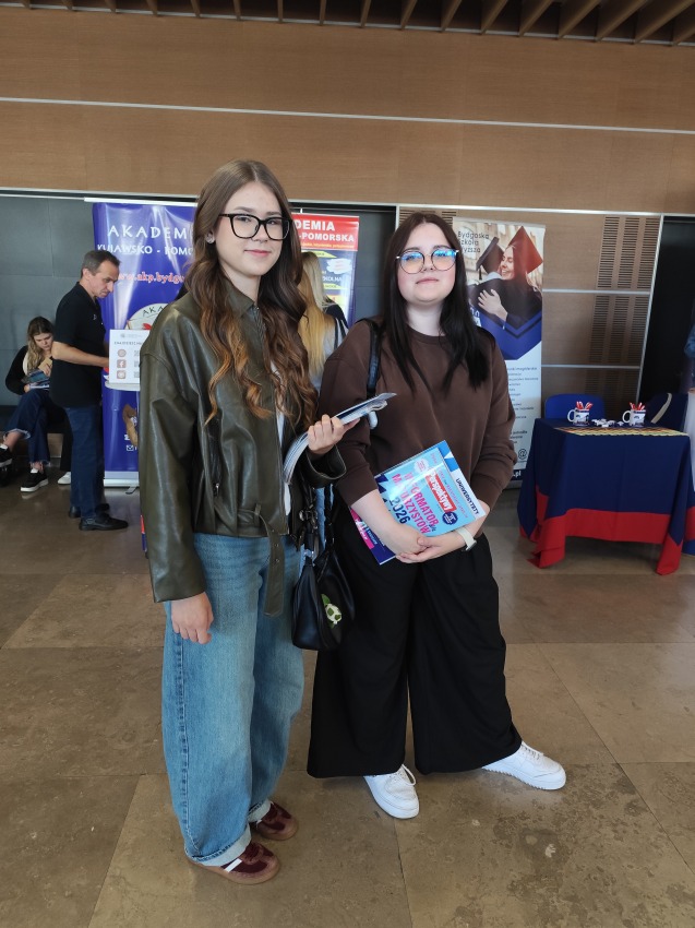 W dniach 15.-16.09.2025 r. klasy czwarte wraz z wychowawcami i doradcą zawodowym uczestniczyły w Salonie Maturzysty Perspektyw, który odbywał się w toruńskiej Auli UMK. Uczniowie otrzymali przewodniki maturzysty, odwiedzili stoiska szkół wyższych i policealnych, gdzie zapoznali się z ich ofertą edukacyjną. Młodzież naszej szkoły uczestniczyła również w wykładach prowadzonych przez specjalistów CKE, dotyczących matury 2026 z poszczególnych przedmiotów.