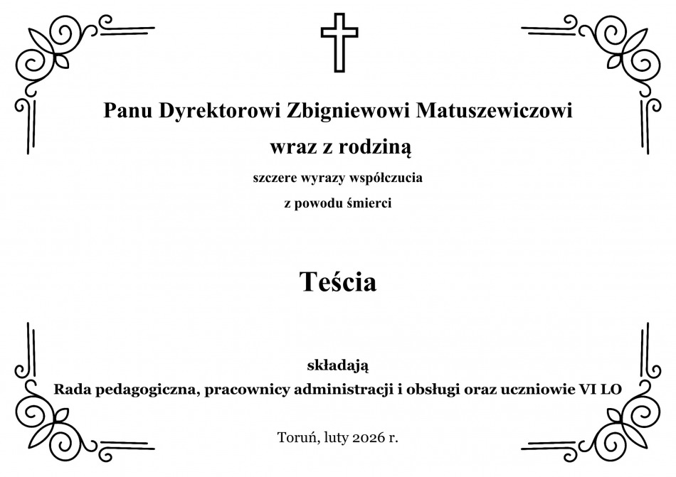 VI Liceum Ogólnokształcące im. Zesłańców Sybiru ul. Wojska Polskiego 47a 87-100 Toruń
