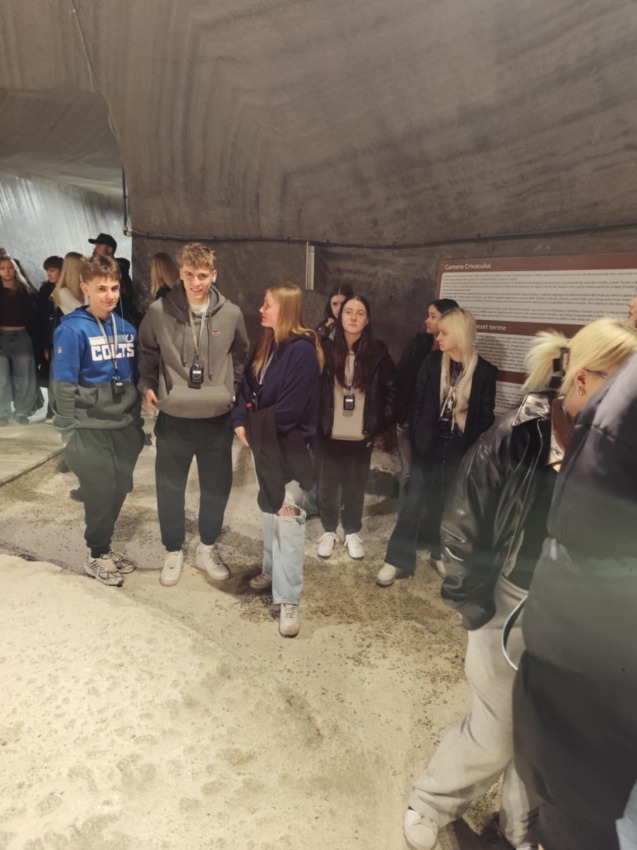 Spacerując po jego centrum, mogliśmy podziwiać zabytkowe budynki oraz poczuć prawdziwy studencki klimat. Następnie udaliśmy się do niezwykłego miejsca – kopalni soli w Turdzie. To imponujące podziemne miasto zrobiło na nas ogromne wrażenie. Zachwyciło nas nie tylko swoim wyglądem, ale także unikalnym mikroklimatem, który sprzyja zdrowiu. W podziemiach czekało na nas wiele atrakcji, w tym możliwość przejażdżki łódkami po podziemnym jeziorze – było to niezapomniane doświadczenie. Dzień 2 spędziliśmy w Alba Julii, gdzie zwiedziliśmy imponującą cytadelę. To miejsce pełne historii, będące świadkiem wielu ważnych wydarzeń w dziejach Rumunii. Monumentalne fortyfikacje oraz piękna architektura sprawiły, że mogliśmy poczuć ducha przeszłości i lepiej zrozumieć historię tego kraju. Kolejnym punktem naszej wycieczki był słynny zamek Bran – malownicza średniowieczna budowla, często kojarzona z legendą o Draculi. Zamek zachwycił nas swoim położeniem oraz tajemniczą atmosferą. Podczas całej wycieczki mieliśmy okazję poznać historię oraz kulturę Rumunii, co było niezwykle cennym doświadczeniem i doskonałą lekcją poza szkolną ławką.