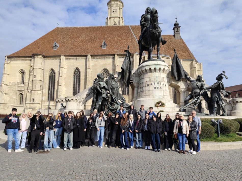 W dniach 24–28 marca uczniowie naszej szkoły uczestniczyli w niezwykłej wycieczce do Transylwanii – regionu pełnego historii, pięknych krajobrazów i fascynujących zabytków. Dzień 1 rozpoczęliśmy od zwiedzania Klużu-Napoki – jednego z najważniejszych miast Rumunii, znanego jako tętniące życiem centrum akademickie. Miasto zachwyciło nas swoją architekturą, klimatycznymi uliczkami oraz wyjątkową atmosferą młodości i otwartości.